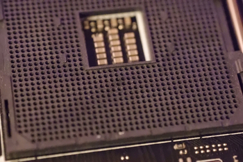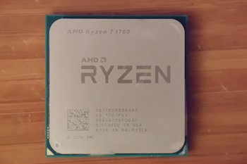 Macro photography of MSI B450 Tomahawk Max II motherboard and Ryzen 7 1700 CPU